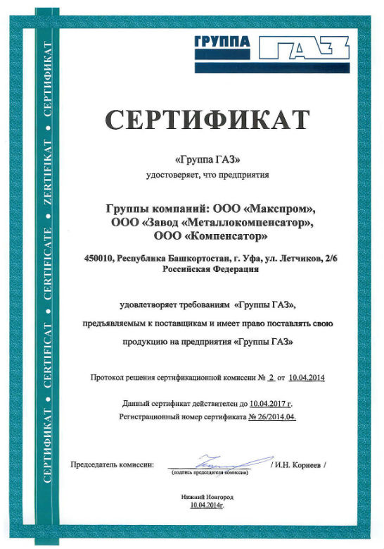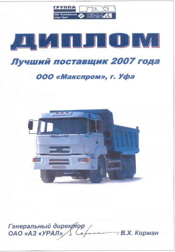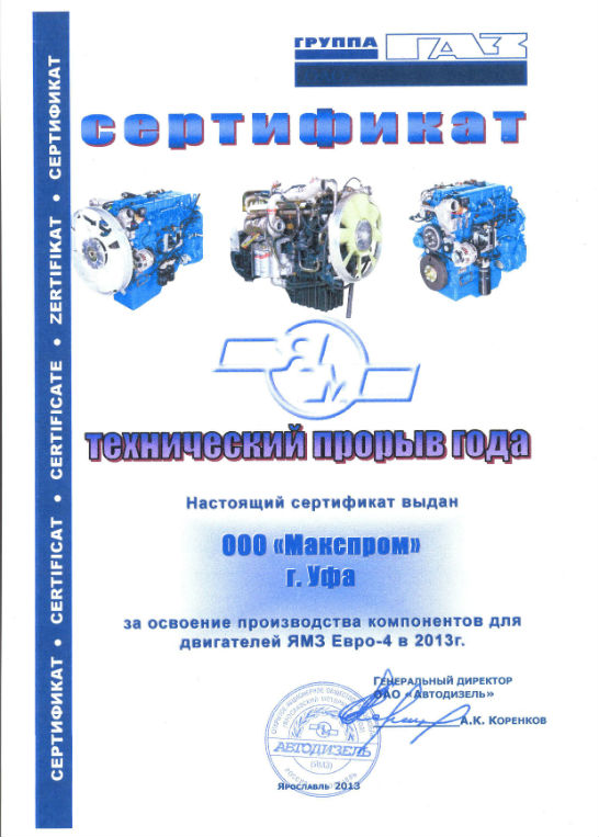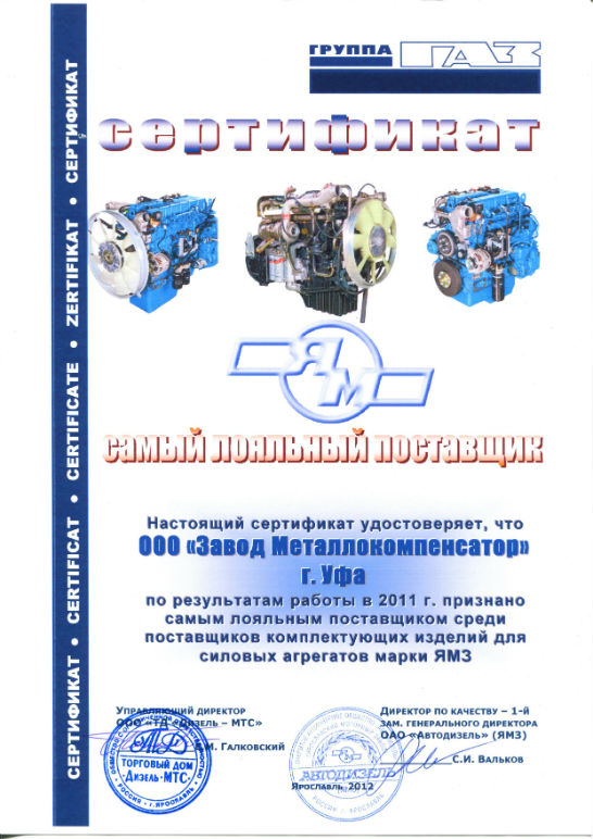 Сертификат ЯМЗ Лояльный Поставщик 2011